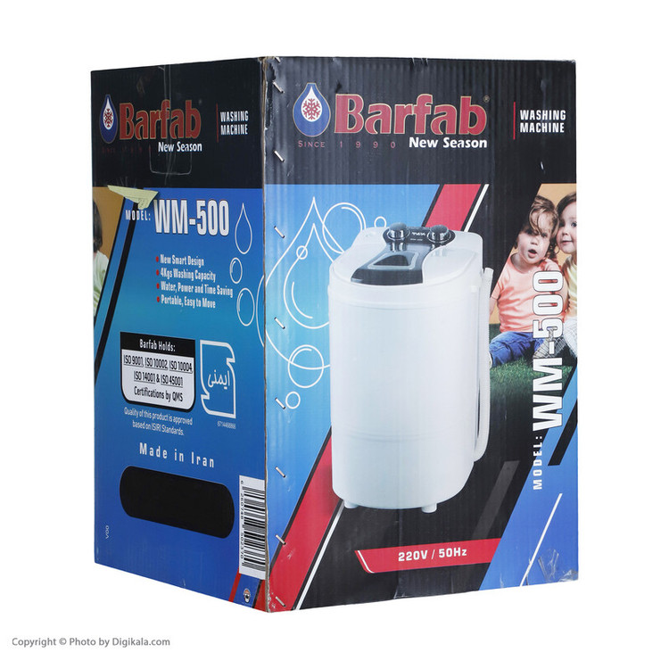 ماشین لباسشویی مینی واش مدل WM-500 شرکت برفاب، دستگاهی کاربردی برای آب کشی و شستشوی منسوجات و البسههای سبک به شمار میرود. این دستگاه ماشین لباسشویی با ظرفیت اسمی 4 کیلوگرم شامل 3 کیلوگرم ظرفیت شستشو و 1 کیلوگرم ظرفیت آب کشی تولید و در اختیار مصرف کننده قرار میگیرد. بر همین اساس، ماشین لباسشویی مدل WM-500 برای شستشوی لباس نوزادان به صورت جداگانه از لباسهای سایر افراد خانواده ، شستشوی لباسهای زیر و جوراب که تعداد دفعات شستشوی آنها در طول هفته زیاد است ولی حجم آن ها کم بوده بهگونهای که روشن کردن ماشین لباس شویی بزرگ برای آن مقرون به صرفه نیست به کار میرود. این کار باعث کاهش هزینه برق و مصرف آب میشود. همچنین این ماشین لباسشویی برای استفاده در خانههایی با فضای کم، افراد مجرد، خانه های دانشجویی از گزینههای کاربردی و راهگشا تلقی میشود. استفاده از متریال پلاستیک مناسب در بدنه این دستگاه، مقاومت بالای ماشین لباسشویی در برابر عوامل محیطی و پوسیدگی را سبب شده است. علاوه بر این، سبک بودن و قابلیت جابجایی اسان و راحت از ویژگیهای ماشین لباسشویی مدل WM-500 است. لازم به ذکر است که این مدل ماشین لباسشویی دارای قابلیت شستشو و خشک کن با دو تایمر مجزا خواهد بود. مشخصات ماشین لباسشویی مدل WM-500 ماشین لباسشویی پرتابل مدل WM-500 برفاب به صورت دستی آبگیری و تخلیه آب میشود و برای تخلیه آب دارای شیلنگ خروجی است.