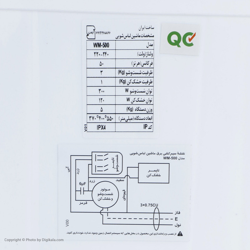 ماشین لباسشویی مینی واش مدل WM-500 شرکت برفاب، دستگاهی کاربردی برای آب کشی و شستشوی منسوجات و البسههای سبک به شمار میرود. این دستگاه ماشین لباسشویی با ظرفیت اسمی 4 کیلوگرم شامل 3 کیلوگرم ظرفیت شستشو و 1 کیلوگرم ظرفیت آب کشی تولید و در اختیار مصرف کننده قرار میگیرد. بر همین اساس، ماشین لباسشویی مدل WM-500 برای شستشوی لباس نوزادان به صورت جداگانه از لباسهای سایر افراد خانواده ، شستشوی لباسهای زیر و جوراب که تعداد دفعات شستشوی آنها در طول هفته زیاد است ولی حجم آن ها کم بوده بهگونهای که روشن کردن ماشین لباس شویی بزرگ برای آن مقرون به صرفه نیست به کار میرود. این کار باعث کاهش هزینه برق و مصرف آب میشود. همچنین این ماشین لباسشویی برای استفاده در خانههایی با فضای کم، افراد مجرد، خانه های دانشجویی از گزینههای کاربردی و راهگشا تلقی میشود. استفاده از متریال پلاستیک مناسب در بدنه این دستگاه، مقاومت بالای ماشین لباسشویی در برابر عوامل محیطی و پوسیدگی را سبب شده است. علاوه بر این، سبک بودن و قابلیت جابجایی اسان و راحت از ویژگیهای ماشین لباسشویی مدل WM-500 است. لازم به ذکر است که این مدل ماشین لباسشویی دارای قابلیت شستشو و خشک کن با دو تایمر مجزا خواهد بود. مشخصات ماشین لباسشویی مدل WM-500 ماشین لباسشویی پرتابل مدل WM-500 برفاب به صورت دستی آبگیری و تخلیه آب میشود و برای تخلیه آب دارای شیلنگ خروجی است.